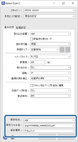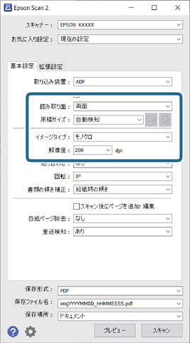 [取り込み装置]は[ADF]に設定されます。