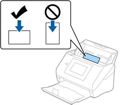 플라스틱 카드의 스캔할 면이 아래를 향하도록 하고, 상단 가장자리가 입력 트레이를 향하도록 ADF에 급지합니다.