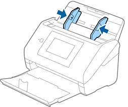입력 트레이의 양쪽 가장자리 가이드를 바깥쪽으로 끝까지 밉니다.