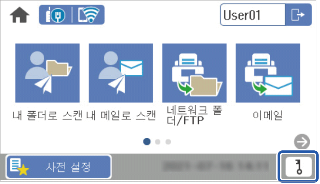 로그인 후 사전 설정 화면이 표시되면 를 눌러 홈 화면을 표시합니다.