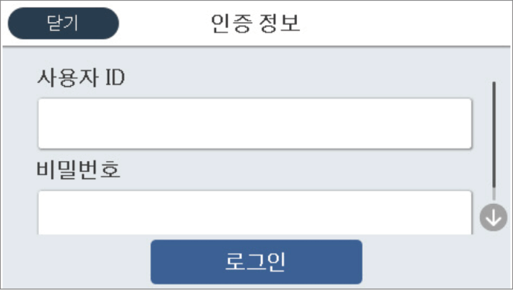 제어판에서 사용자 ID 및 비밀번호를 입력합니다.