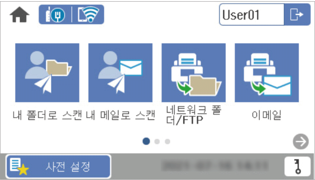 무선 LAN으로 연결된 스캐너가 절전 모드 상태인 경우, 인증 카드를 인식하는 데 다소 시간이 소요될 수 있습니다. 카드를 인증 장치 위에 다시 대어야 하는 경우도 있습니다.