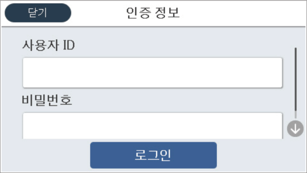 로그인할 스캐너 제어판에 사용자 정보를 입력합니다.