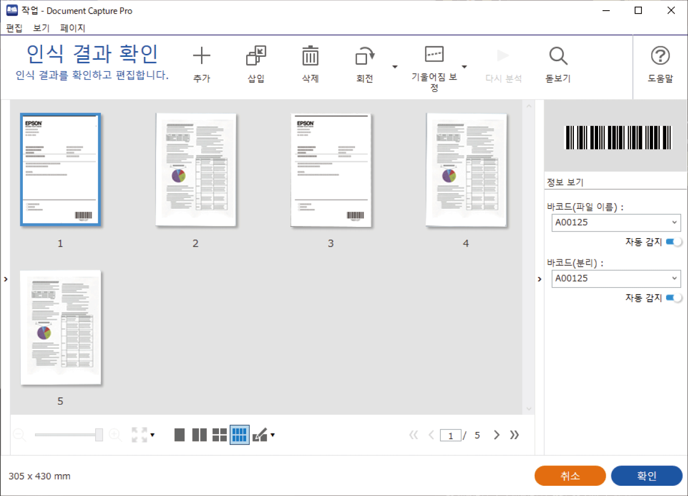 스캔된 결과 편집 화면에서 다음을 확인하고 편집할 수 있습니다.