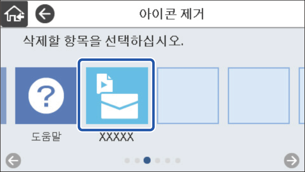 스캐너 제어판에서 설정 > 홈 편집 > 아이콘 제거를 선택합니다.