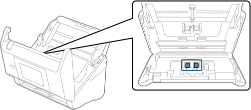 덮개를 열고 분리 롤러를 분리합니다.