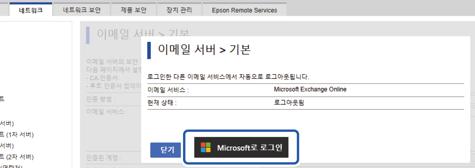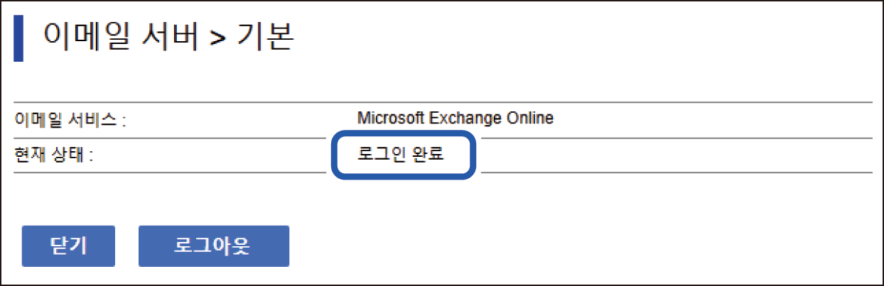 Web Config에서 네트워크 탭 > 이메일 서버 > 기본 페이지에서 로그인 상태를 확인할 수 있습니다.