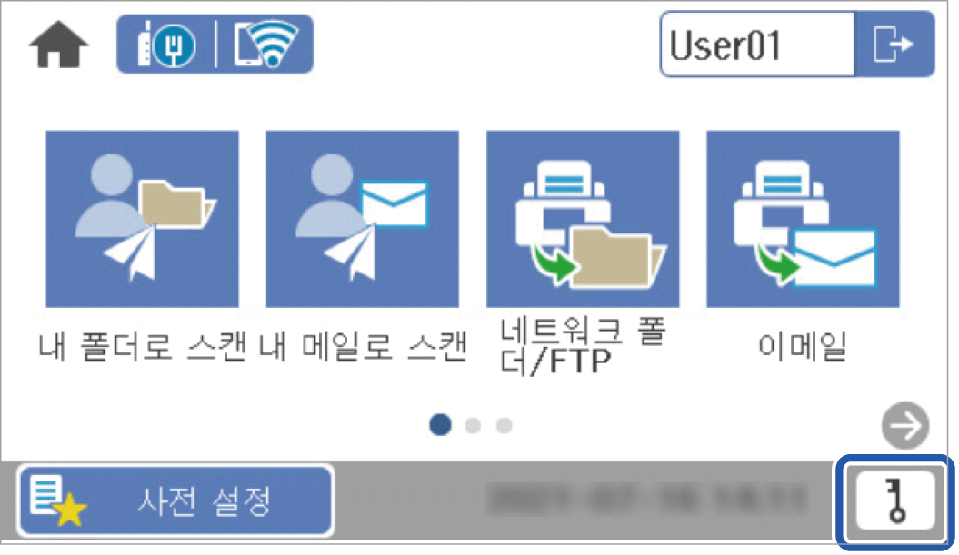 로그인 후 사전 설정 화면이 표시되면 를 눌러 홈 화면을 표시합니다.
