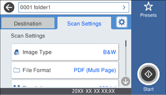 Pirms skenēšanas var pārbaudīt adresātu. Atlasiet Iestatījumi > Skenera iestatījumi un pēc tam iespējojiet Apstiprināt saņēmēju.