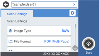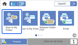 Velg Skann til min mappe på startskjermen til skannerens kontrollpanel.