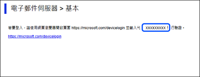 在驗證碼輸入畫面上,輸入您所複製的代碼,然後按下 [下一步]。