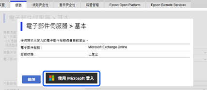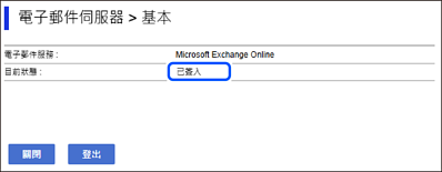 您可以在 [網路] 索引標籤 > [電子郵件伺服器] > [基本] 頁面,在 Web Config 中查看登入狀態。