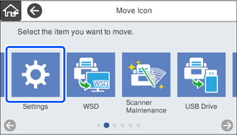 เลือกที่ การตั้งค่า > แก้ไขหน้าจอหลัก > ย้ายไอคอน บนแผงควบคุมของสแกนเนอร์