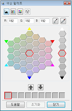 선택한 색이 색상 팔레트 창의 가운데 셀로 이동하고 주변 셀의 색상이 달라집니다.