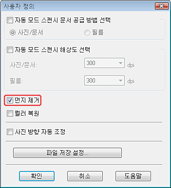 먼지 제거 기능으로 먼지 흔적 제거Epson Scan의 먼지 제거 기능을 사용하면, 원본 사진을 스캔할 때 먼지 흔적을 거의 "말끔히" 제거할 수 있습니다.