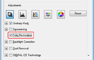 Kliknite potrditveno polje Color Restoration.
