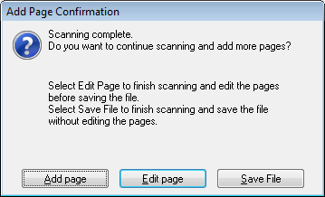 Če počistite potrditveno polje Show Add Page dialog after scanning v oknu File Save Settings, se to okno ne pojavi in program Epson Scan samodejno shrani dokument.