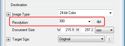 Nastavitev Resolution povečajte za enako vrednost, kot boste povečali velikost slike po optičnem branju.