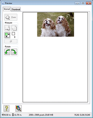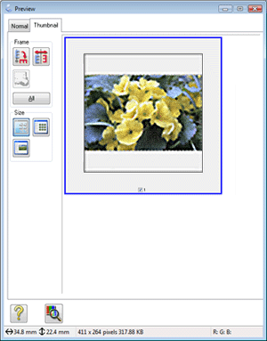 Program Epson Scan predhodno optično prebere slike in jih prikaže v enem od naslednjih oken Preview: