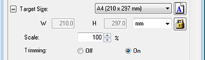 Če želite spremeniti način obrezovanja slike, vklopite ali izklopite funkcijo Trimming. Podrobnosti najdete v pomoči programa Epson Scan.
