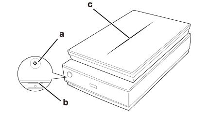 Indicatorii luminoşi şi butonul StartScanerul are un buton pentru operaţii de scanare. Indicatorul luminos al scanerului arată starea acestuia.