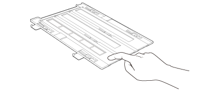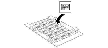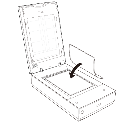 Aşezaţi suportul pentru film pe masa pentru documente astfel încât să fie aliniat cu colţul dreapta sus. Aliniaţi simbolul  de pe marginea suportului pentru film cu simbolul  de pe marginea mesei pentru documente.