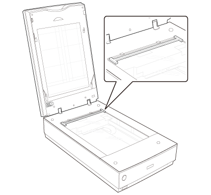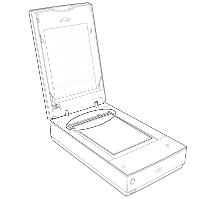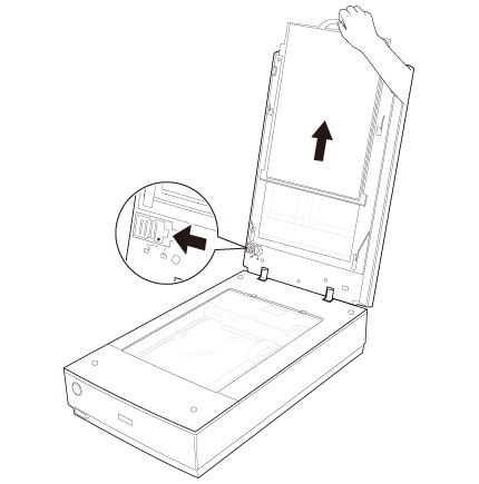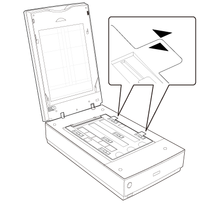 Pentru a scana fâşii de film sau diapozitive, trebuie să îndepărtaţi suportul pentru documente de pe capacul scanerului. Astfel, descoperiţi unitatea de transparenţă pentru ca scanerul să o poată utiliza pentru scanarea filmelor sau a diapozitivelor.