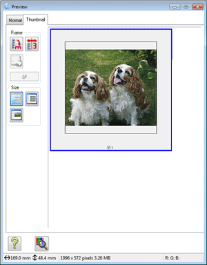 Jei norite padidinti arba sumažinti peržiūros vaizdą, rodomą normaliu peržiūros režimu, pakeiskite lango Preview (Peržiūra) dydį. Vaizdo dydis keičiasi priklausomai nuo lango Preview (Peržiūra) dydžio.