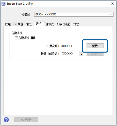 执行定期清洗后,在 Epson Scan 2 Utility 中重置扫描次数。