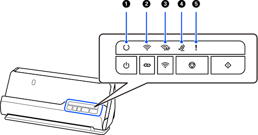 白光表示扫描仪已连接到无线 LAN (Wi-Fi)。蓝光表示扫描仪正在搜索接入点。
