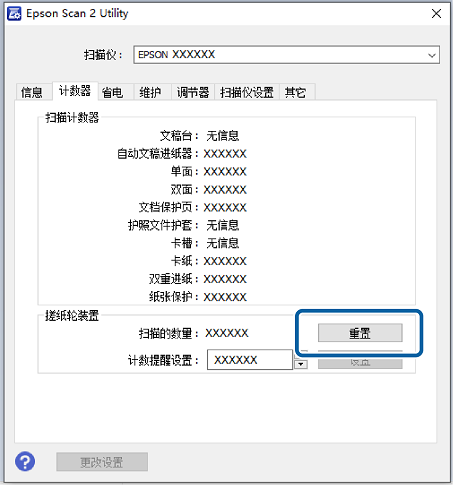 更换搓纸轮装置后,请使用 Epson Scan 2 Utility 重置扫描次数。