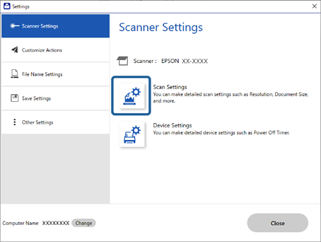 Tarayıcı Ayarları sekmesinde Tarama Ayarları öğesine tıklayın.