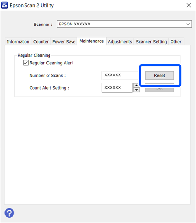 Düzenli temizlik yaptıktan sonra, Epson Scan 2 Utility’de tarama sayısını sıfırlayın.