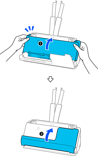 Tarayıcı kapağını iki elinizle kapatın. Sonra, dikey yol kapağını kapatın.