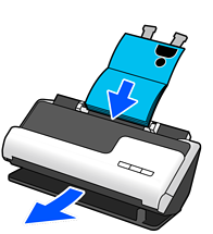 За да скенирате оригинали како што се пасоши или брошури, поставете го скенерот во положбата за права патека.