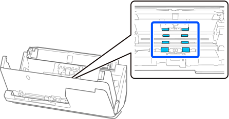 Limpe os rolos (8 pontos). Limpe-os com um pano macio isento de pêlos humedecido com uma pequena quantidade de produto de limpeza apropriado ou água.