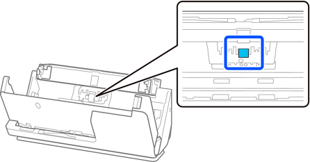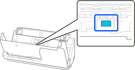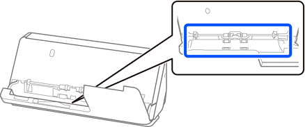 Remova todas as manchas do rolo de separação. Abra a tampa e remova o rolo de separação.