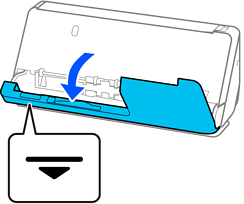 Feche a tampa do scanner com as duas mãos. Depois, feche a tampa de percurso vertical e, depois, o tabuleiro de entrada, respeitando essa ordem.