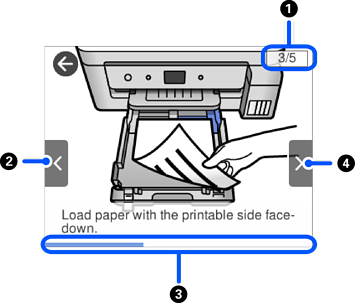 En la pantalla LCD puede ver las animaciones de las instrucciones de funcionamiento tales como cargar papel o retirar el papel atascado.