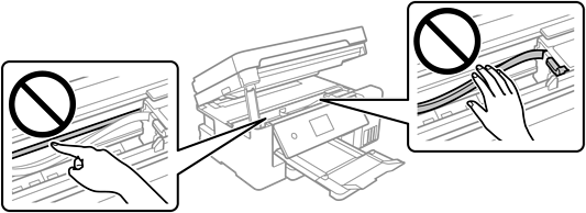 Ne touchez pas le câble plat blanc, la partie translucide et les tubes d’encre situés à l’intérieur de l’imprimante. Faute de quoi vous risquez de provoquer un dysfonctionnement.