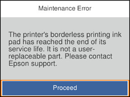Če se prikaže spodnji zaslon, uporabniki ne morejo sami zamenjati dela. Obrnite se na Epsonovo službo za podporo.