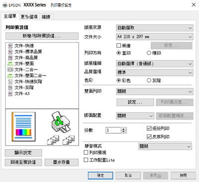 有關印表機驅動程式的詳細資訊,請參閱功能表選項。