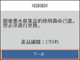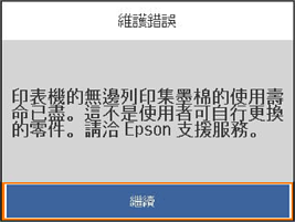 顯示下列畫面時,使用者不可更換該部分。請聯絡 Epson 支援服務。