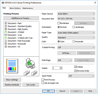 Selectați Preferințe sau Proprietăți pentru a accesa fereastra driver-ului imprimantei.