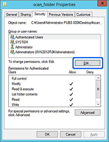 روی گزینه افزودن زیر نام کاربران یا گروهها کلیک کنید.