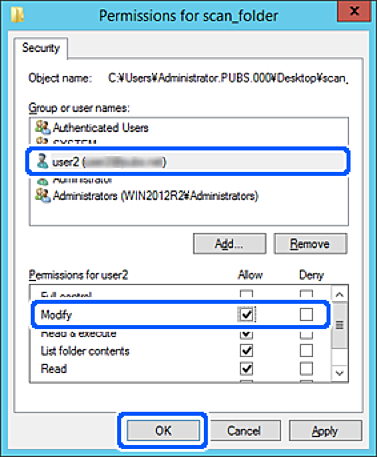 در صفحه مجوز، نام کاربری که در قسمت نام کاربران یا گروهها وارد شده است را انتخاب کنید و سپس در قسمت «تغییر»، اجازه دسترسی را انتخاب کنید و در نهایت روی گزینه تأیید کلیک کنید.
