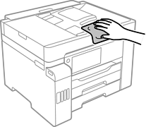 چنانچه قاب بیرونی چاپگر کثیف است یا گرد و خاک دارد، چاپگر را خاموش کنید و با یک دستمال نرم، پاک و مرطوب تمیز نمایید. اگر نمیتوانید چرک را پاک کنید، از یک دستمال نرم، تمیز و مرطوب آغشته به شوینده ملایم استفاده کنید.