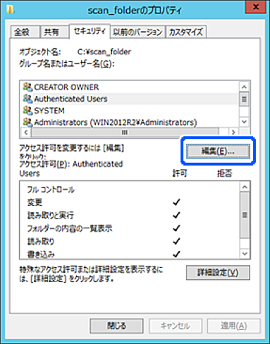 以下の手順で共有フォルダーにアクセスを許可するグループやユーザーを追加できます。