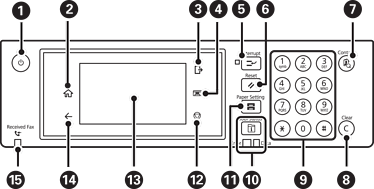 Menýulary we hatlary görkezýär. Dolandyryş paneliniň rakursyny üýtgedip bilersiňiz. Belli bir wagtlap hiç hili amal ýerine ýetirilmese, printer uky tertibine girýär we displeý ýapylýar. Displeýi açmak üçin, duýgur ekranyň bir ýerine degiň. Häzirki sazlamalara baglylykda, dolandyryş panelindäki düwmeleri basmak printeri uky tertibinden oýarýar. |