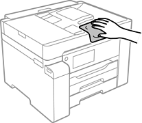 Eger komponentler we çehol hapa ýa-da tozanly bolsa, printeriň toguny öçüriň we olary suw bilen öllenen ýumşak, arassa mata bilen arassalaň. Hapany aýryp bilmeseňiz, öl mata az möçberde ýeňiljek ýuwujy serişde goşup görüň.